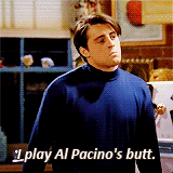 A life lesson that can be taken from this episode is: take every opportunity you get in your career, and on an even bigger scale, in your life. Joey portrays this very well in this episode by being proud of himself for landing a role in the new Al Pacino movie, despite the fact that he has to play Pacino’s butt double. All his friends make fun of him for this, and honestly, we as the audience are laughing our heads off too, but it doesn’t matter to Joey because he finally got into a movie. He has been trying quite hard to make it as an actor and has only been able to land roles in minor plays and such, so this is an opportunity for him to be able to start getting into bigger, better, and more important things. He knows that playing the butt double of somebody, even Al Pacino, is not an amazing role, but more importantly he knows that this could be his segue into a better world of show business. Over the seasons in Friends Joey takes many other odd jobs, these being in show business or not, to be able to find a way to still pursue his passion of being an actor. All these opportunities lead him to truly making it as an actor, and over the next couple of seasons we can see this evolve. Never fear to take all the opportunities you can get, and to always follow your dreams.